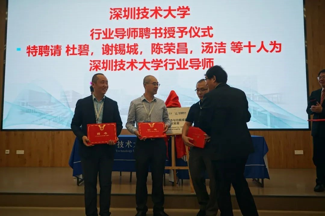 本次论坛上还举行了深圳技术大学与ty8天游平台登录科技的联合实验室“4D医学动态与功能成像联合实验室”的揭牌和签约仪式,并正式聘请ty8天游平台登录科技董事长杜碧先生为深圳技术大学行业导师。