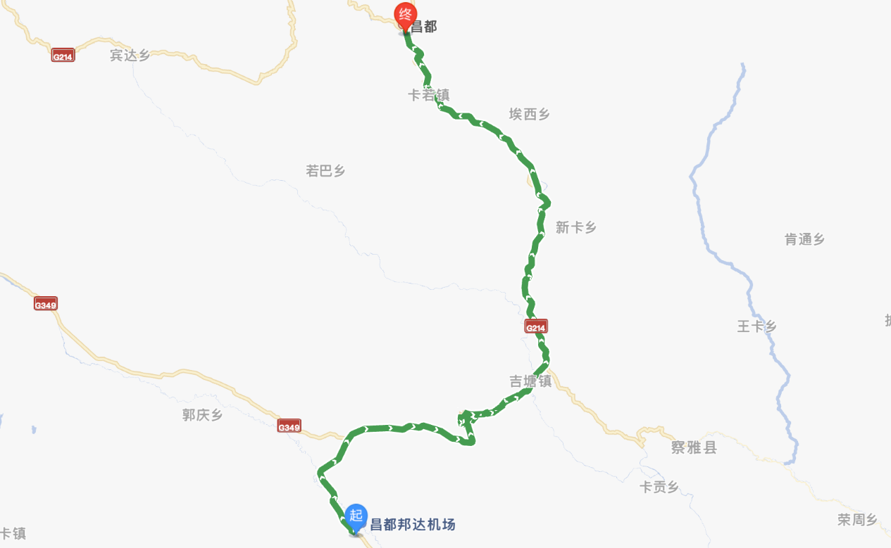 图1:邦达机场到昌都,沿澜沧江曲折而上
